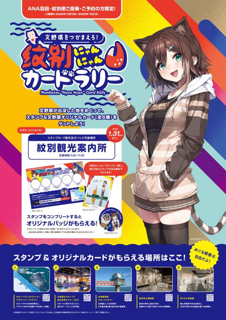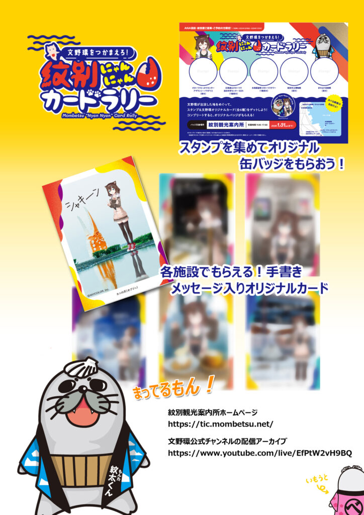 文野環が出没した紋別市内をめぐって、スタンプ(5種)&文野環オリジナルカード(全6種)をゲットしよう!