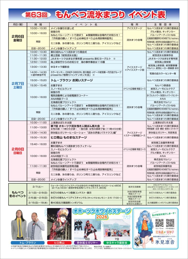 第63回もんべつ流氷まつり 2026年2月6日(金)~2月8日(日)