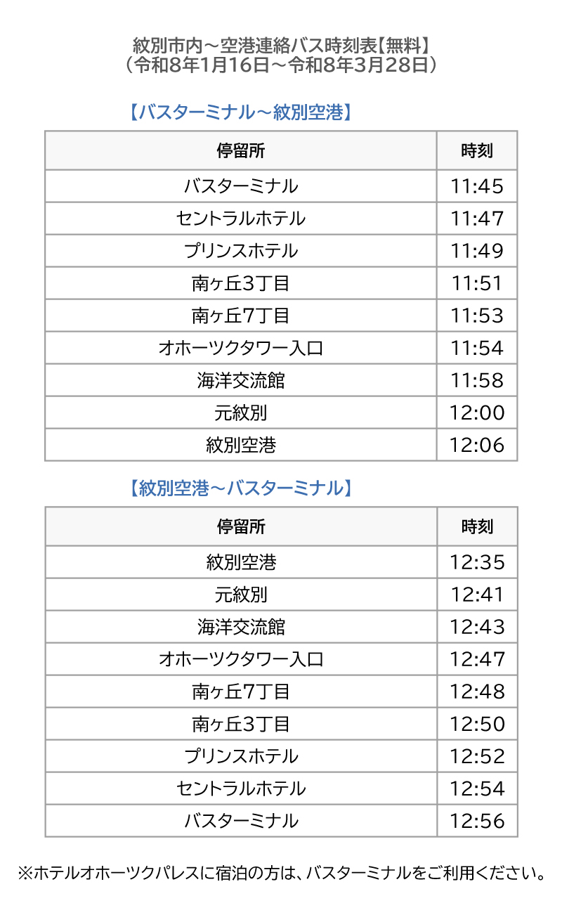 今年度も流氷シーズンに合わせ市内観光施設や人気の土産店、ホテルを結ぶシャトルバスを運行いたします。