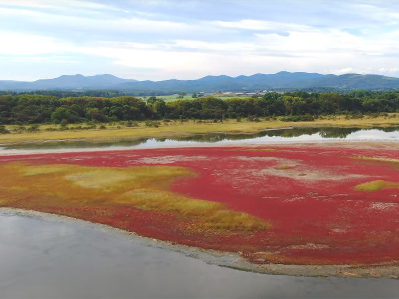 海、湖、山が一望できる景勝地でもあります。秋にはサンゴソウがじゅうたんを敷き詰めたように真っ赤に広がります。