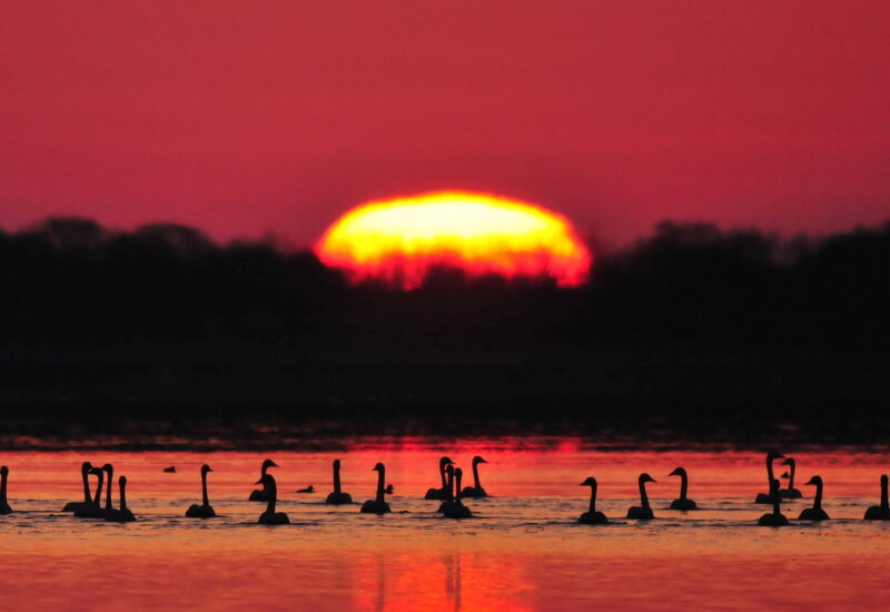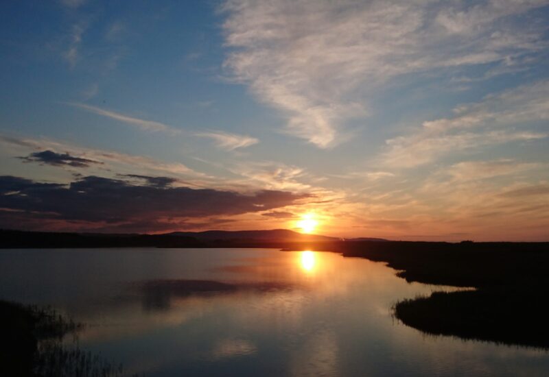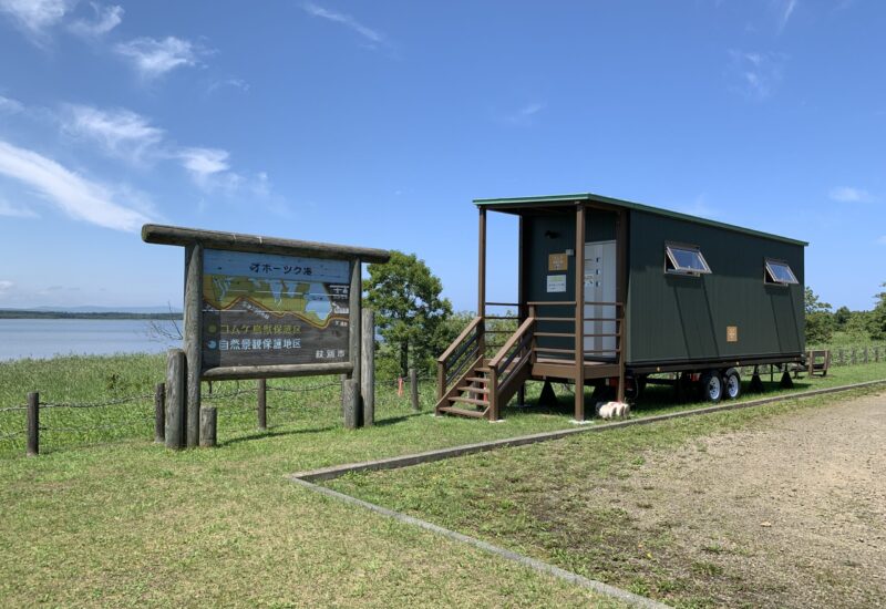 コムケ湖は、紋別市街から湧別町寄りに約20km、オホーツク海に面した場所にあります。コムケは、アイヌ語で『曲がった』の意で、湖は細長く複雑な形をしています。オオハクチョウやオジロワシ、アオサギなど約200種類が飛来する野鳥の楽園です。