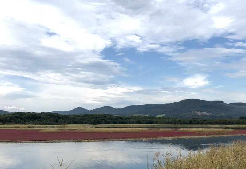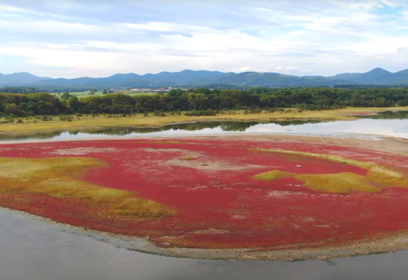 海、湖、山が一望できる景勝地でもあります。秋にはサンゴソウがじゅうたんを敷き詰めたように真っ赤に広がります。